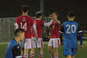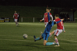 On thirty-two minutes, Jamie Docherty’s shot from distance is saved by St Andrews keeper Thomas Margretts. A cross by Scott McRory-Irving finds Errol Douglas who heads wide of the right-hand post on thirty-eight minutes.