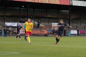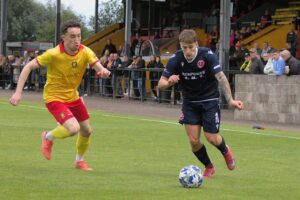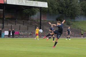 .Broxburn take an early lead on five minutes. Jon Robertson picks up on the right and plays a ball forward to Louis Kennedy. The Broxburn wingers cross is half cleared as far as Jamie Docherty, who takes a touch before scoring into the left corner. Two minutes later it was 2-0. Jon Robertson plays it infield to Kyle Bell who drives forward, before playing in Louis Kennedy. Kennedy’s shot is palmed away by Albion keeper Alfie Halliwell. The loose ball is half cleared by Devan McColl as far as Jamie Docherty who scores a great finish on the half volley that kisses the bar on the way in.
