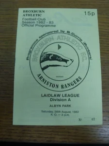 Arniston Rangers compete in the East of Scotland Second Division. They currently lie in fourth position, winning four, drawing four and losing one, in their nine games played so far.