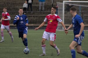 Broxburn equalise on thirty-three minutes. Robbie McGale does well to get beyond two Bo’ness players to the byline. His cross is half cleared as far as Jamie Docherty who finds the bottom left corner with a good strike. Broxburn Took the lead on fifty-eight minutes. Jamie Docherty feeds in Scott McRory Irving down the left wing. He plays a ball inside to Marcus Lavery who crosses for Errol Douglas. Big E scores with a good low left foot strike.