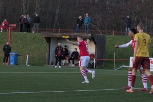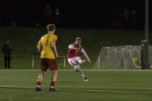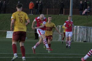 On twenty-five minutes, a long ball forward by Greg Page finds Jamie Docherty, who finds Chris O’ Kane in space. Kano’s shot is well saved by Whitburn keeper Danny Farrell, who pushed it wide for a corner. GOAL! Broxburn open the scoring on twenty six minutes, a corner from the left by Robbie McGale is headed home by Jon Robertson.